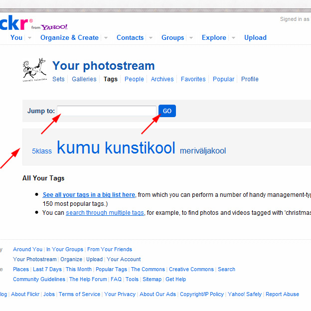 Kui tahad näha, mida sinu koolist või mõnest teisest koolist on postitatud, siis vajuta Tags.
