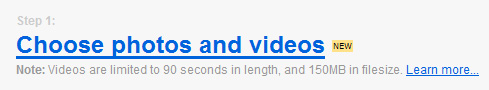 6. Sulle avaneb üleslaadimise leht, kust vajuta nuppu: Choose photos and videos.
